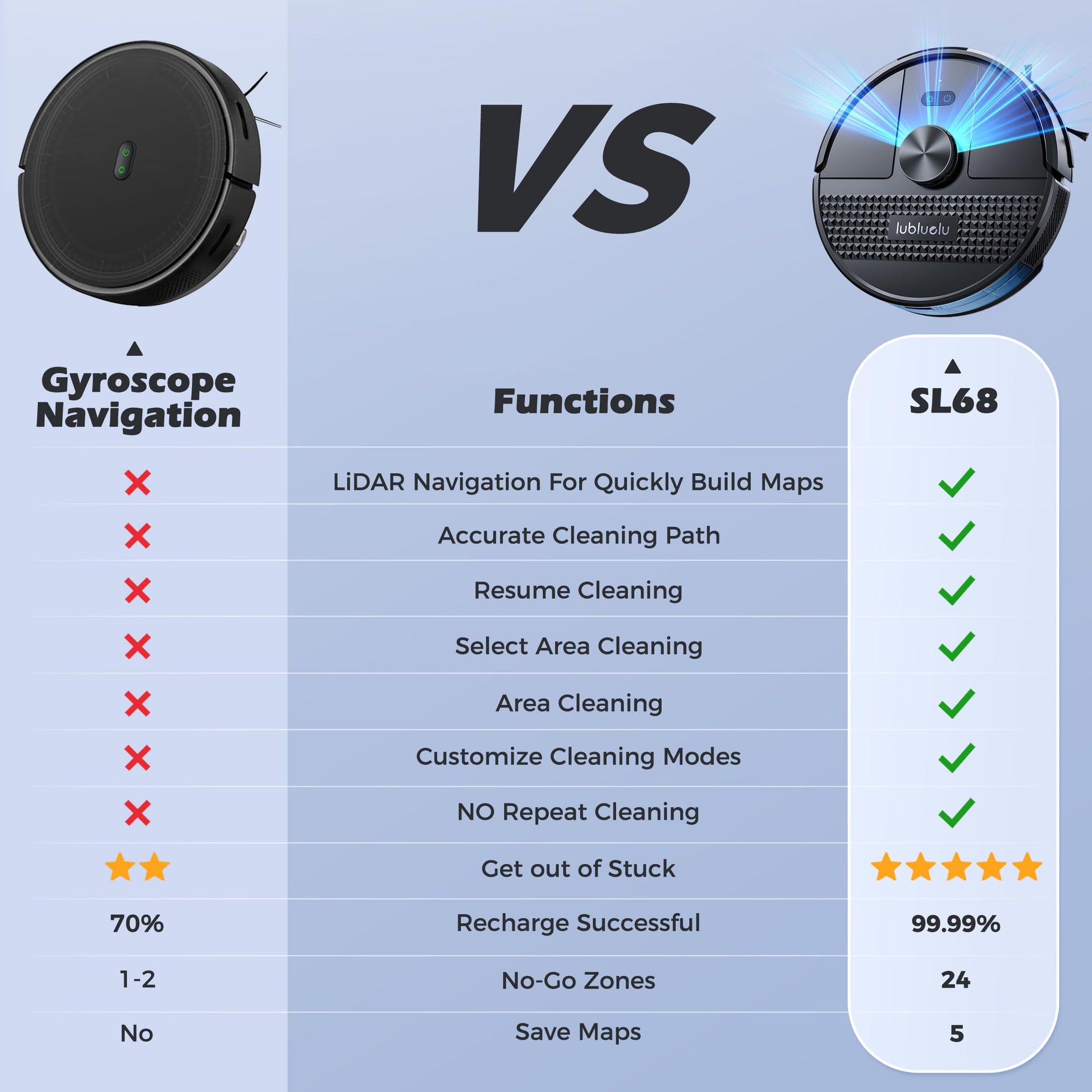 - 【Wir sind hier】Lubluelu hat sich schon immer der Philosophie "Der Kunde steht an erster Stelle" verschrieben. Wir verfügen über ein professionelles technisches FAE-Supportteam, um sicherzustellen, dass Sie Hilfe bekommen, wenn Sie sie brauchen, und um Ihnen ein zufriedenstellendes Erlebnis und auch eine 2-jährige Unterstützung zu bieten. Der Lubluelu SL68 Staubsaugerroboter ist ein großartiges Geschenk für Ihre Liebsten, insbesondere für ältere Menschen und Menschen mit eingeschränkter Mobilität.