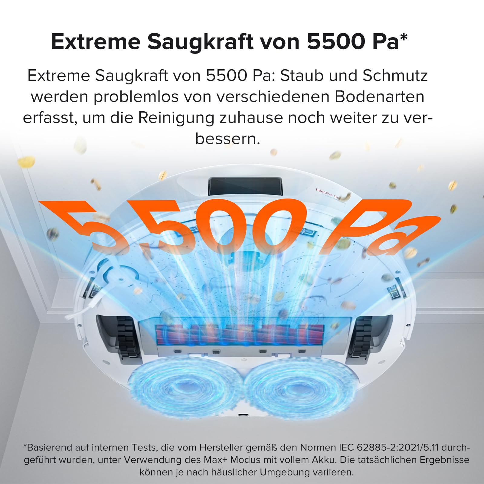 - Doppeldrehmopps, extreme Saugkraft von 5500 Pa. roborock Qrevo Staubsauger Roboter mit Absaugstation ermöglicht noch effizientere Reinigung. Die neu entwickelte Gummibürste reinigt noch gründlicher, ohne sich zu verheddern. Extreme Saugkraft von 5500 Pa sorgt für die tief liegenden Rückstände und Staubpartikel von Hartböden und Teppichen.